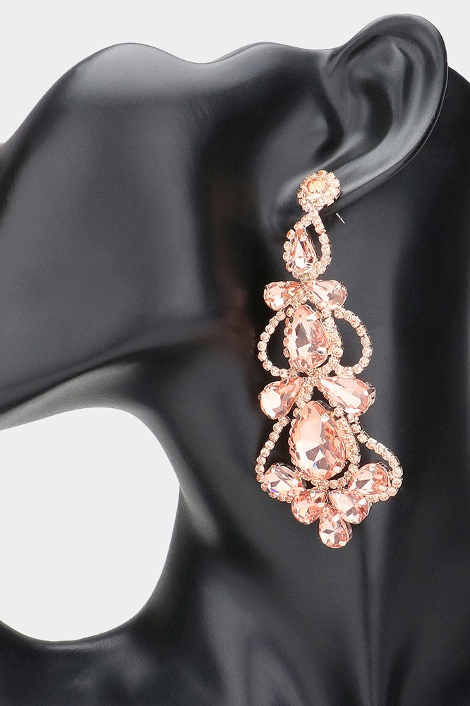 Teardrop Stone Cluster Chandelier Evening Earrings