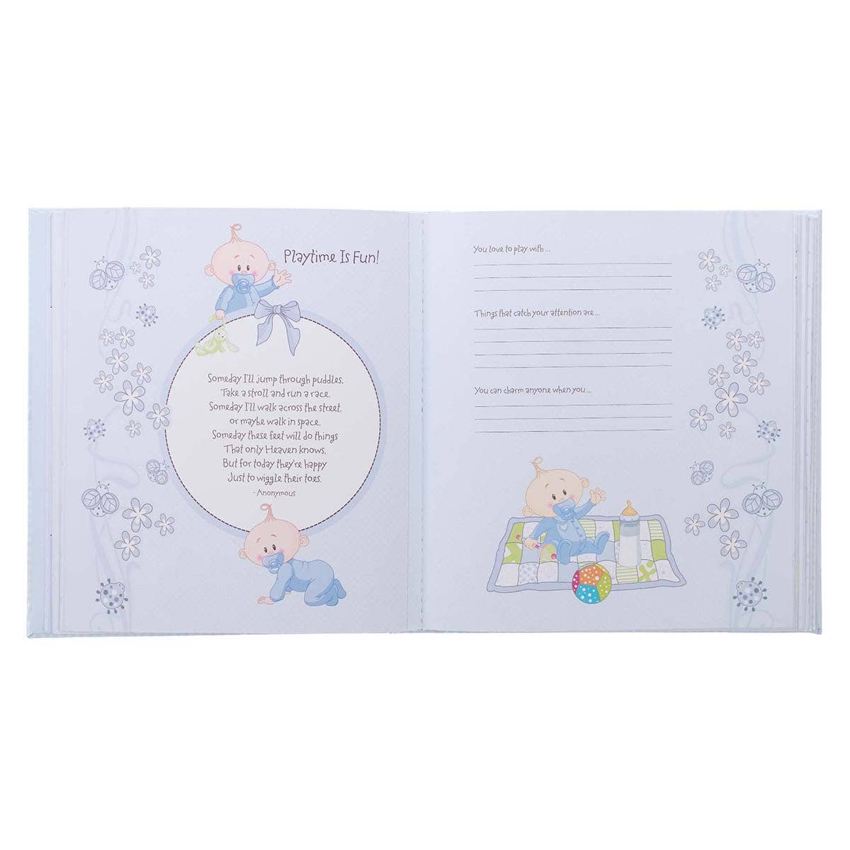 Track the amazing growth of your little man with the Our Baby Boy Memory Book. Moments fly by too quickly to remember, so use the Our Baby Boy Memory Book to record all those precious firsts! The back cover flap folds over the front cover and attaches with a strong magnet to secure all your loose papers. Inside the full-color printed memory book are 64 acid-free pages filled with prompts to commemorate the first year of your precious son's life. There are prompted pages to fill in, scrapbooking pages for photos and more, small envelopes for the hospital bracelet and a lock of hair from the first haircut, and 2 full pockets for assorted keepsakes.
