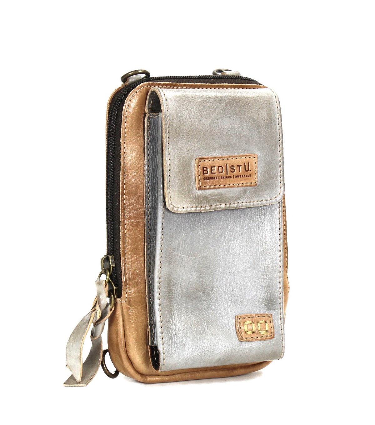 - Compact leather phone case and essentials holder, adjustable and removable strap