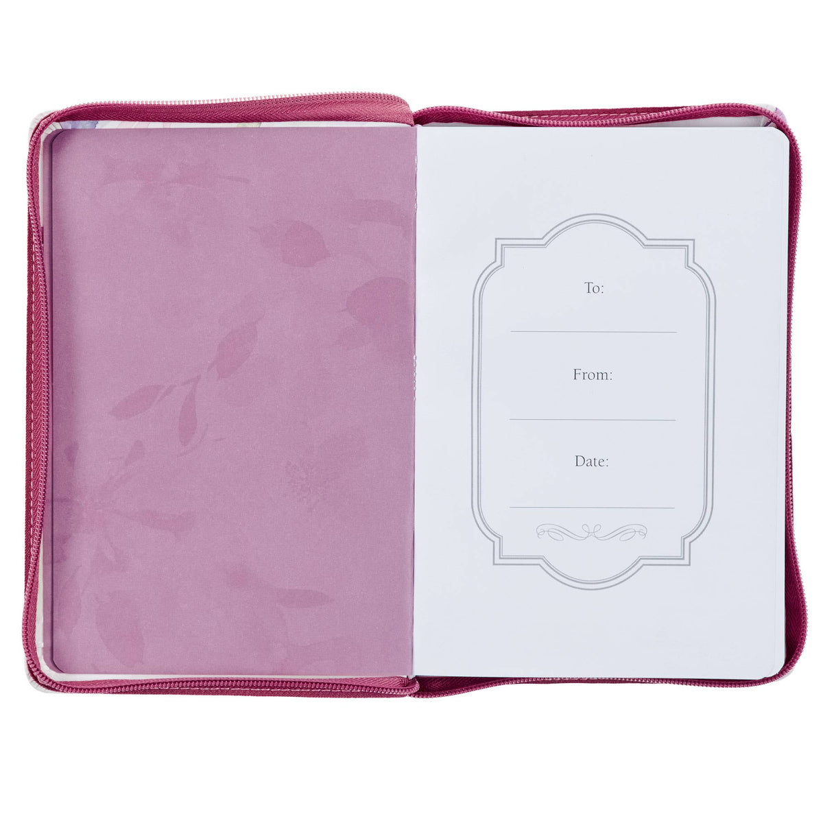 Note your prayers and dreams on the pages of the Trust in the LORD Plum Floral Faux Leather Classic Journal with Zipper Closure, and keep all your loose notes and mementos secure.