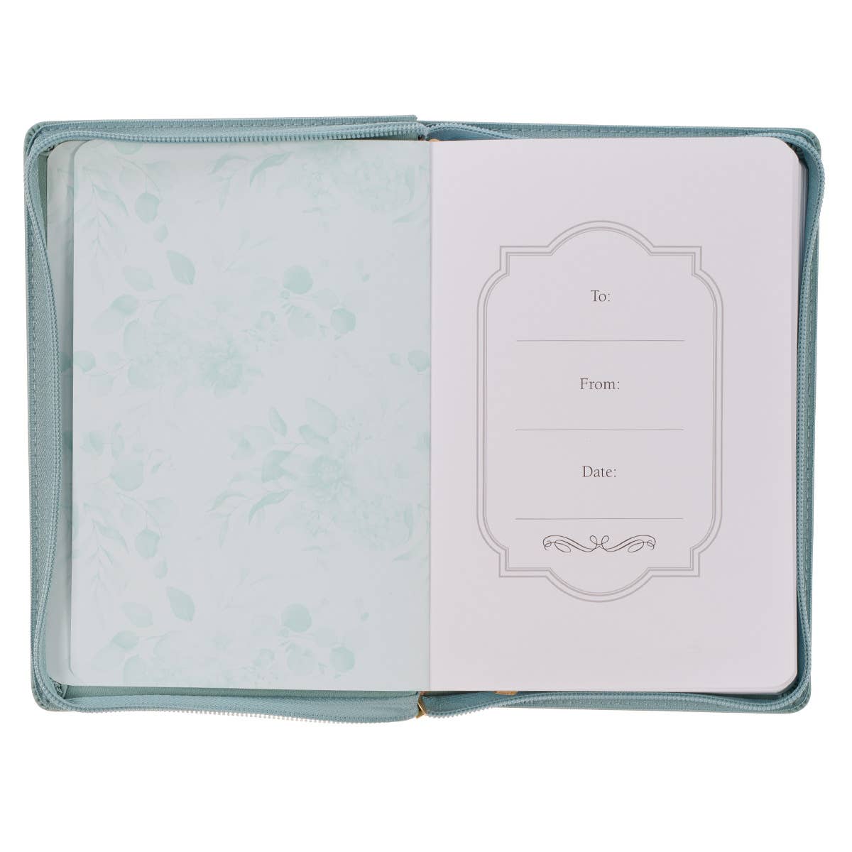 The comforting words of the Walk By Faith Teal Floral Faux Leather Classic Journal with Zippered Closure will keep your mind focused on the ultimate goal: to spend eternity with the LORD. Use the journal to remind yourself of your purpose in this life and beyond.