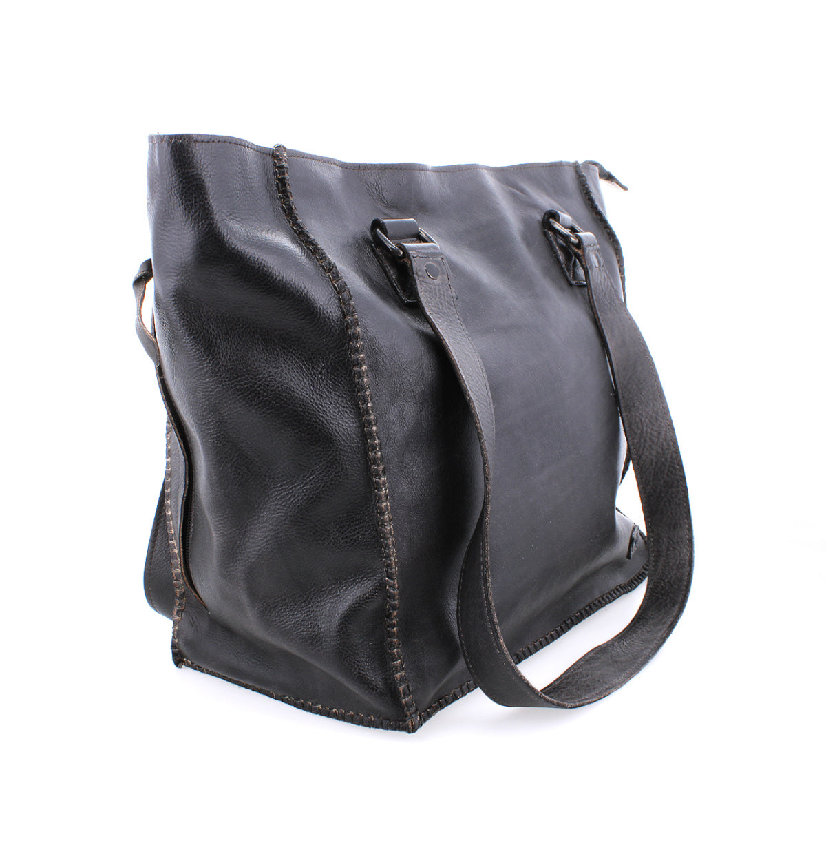 • 1 interior zippered pocket with braided leather pull, 2 slip pockets