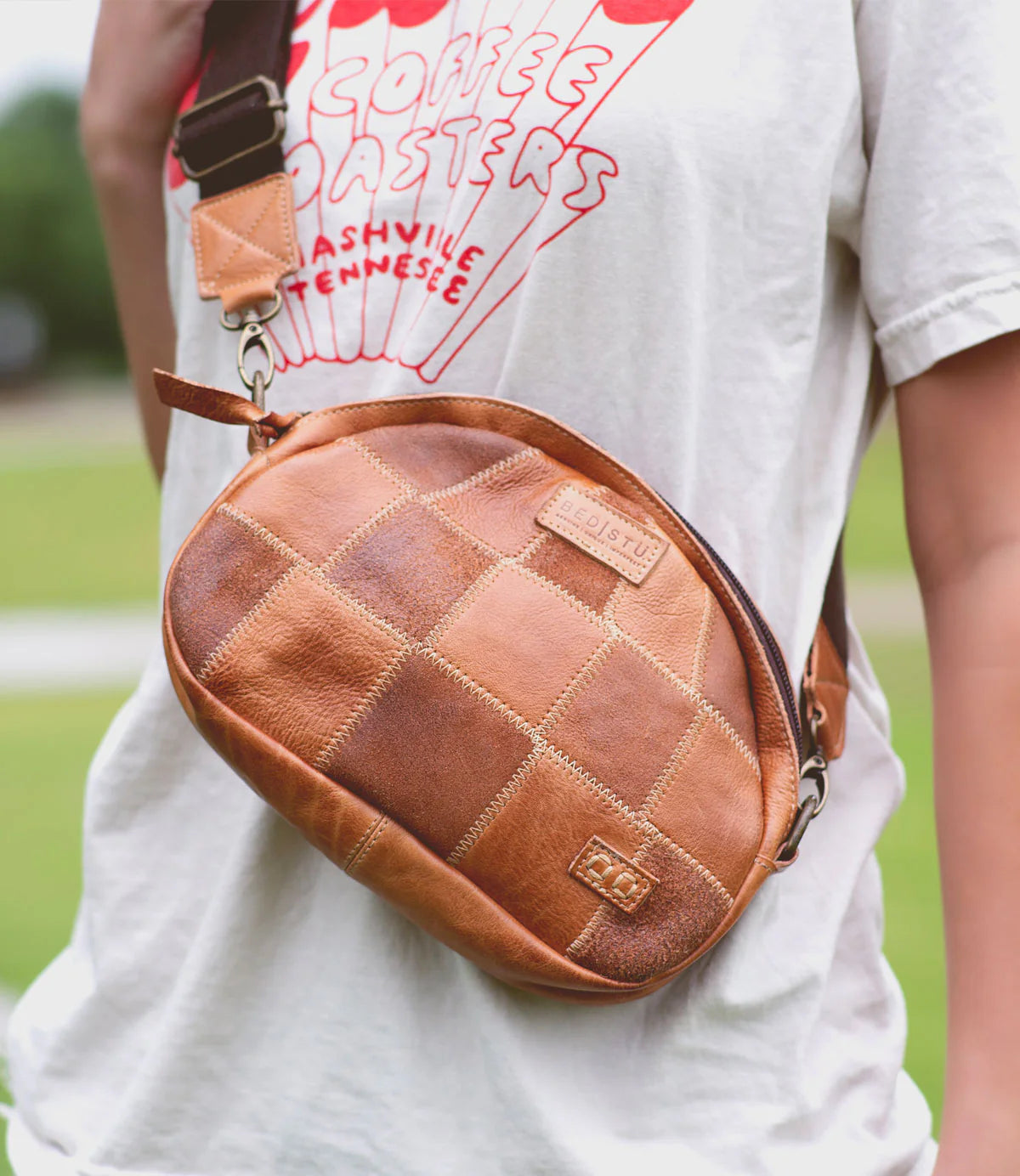 • Unique scrap leather patchwork front, promising no waste at the factory level