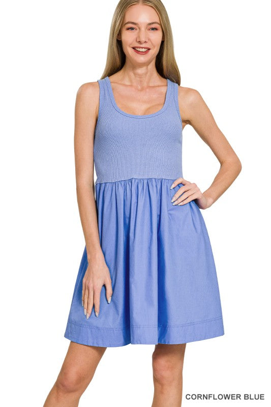 COMBINED KNIT & WOVEN DRESS WITH POCKET