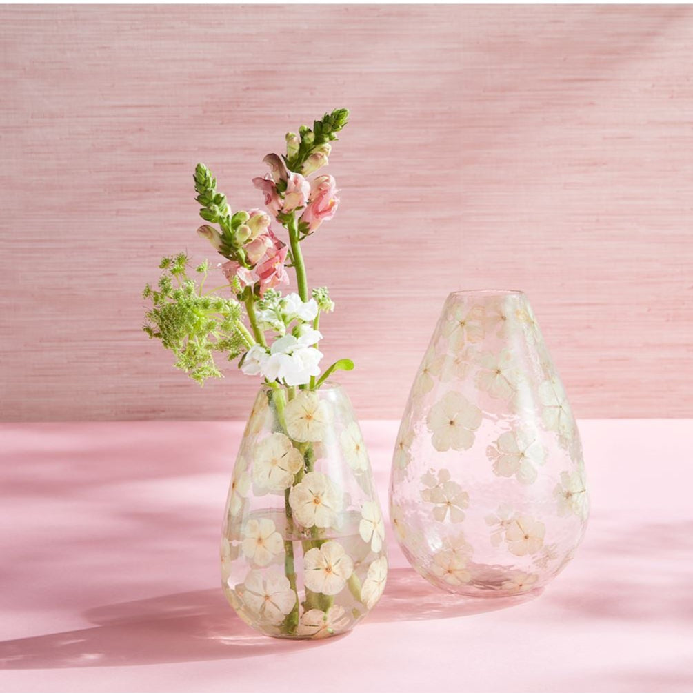 This exquisite small pressed flower vase is a charming addition to any home decor. Crafted from high-quality glass, it features delicate pressed flower details that add a touch of nature's beauty to your space. With dimensions of 7 inches in height and a diameter of 4 3/4 inches, this vase is perfect for displaying a small bouquet or a single stem, making it a versatile piece for any room. Its clear glass construction allows the vibrant colors of the flowers to shine through, creating a stunning visual effect. Ideal for adding a subtle floral accent to your living room, bedroom, or office, this vase is both elegant and functional.
