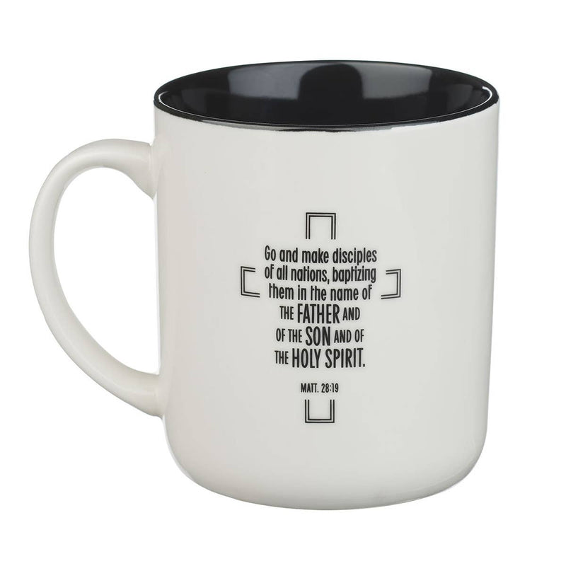 Mug White/Black Jesus Badge Matt. 28:19
