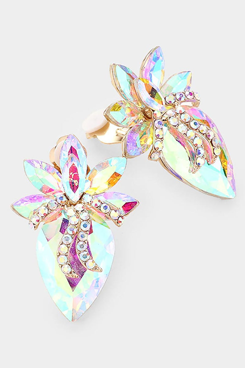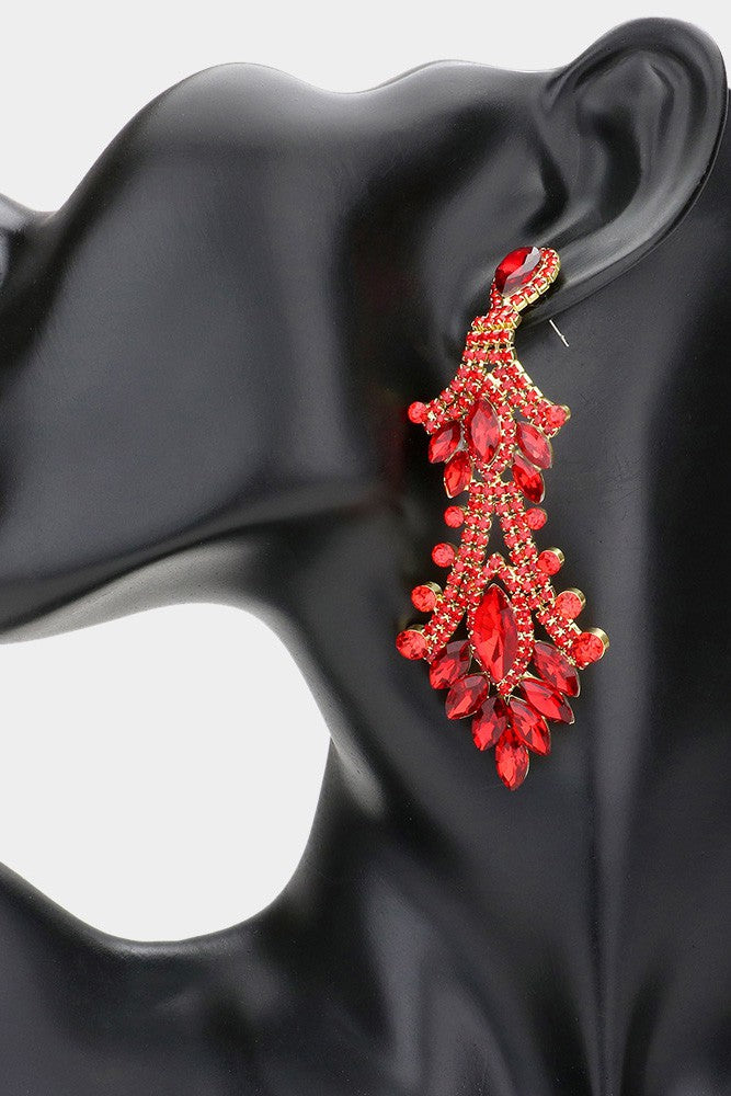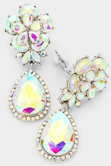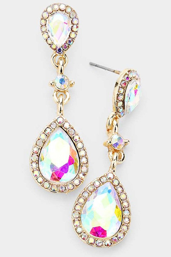 Pear Crystal Rhinestone Trim Drop Evening Earrings