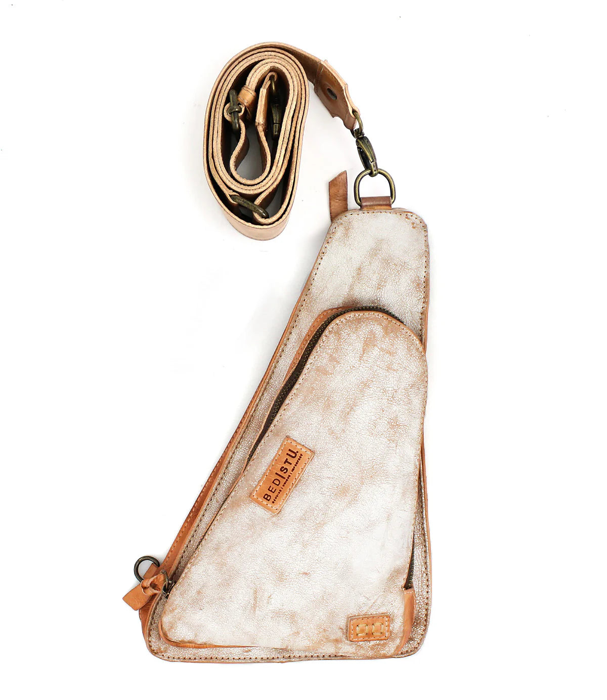Meet Adept - your most adept travel companion. Sustainably handmade from BED|STÜ's high quality, 100% vegetable tanned leather, this compact sling bag features two spacious zippered compartments to keep all of your essentials safe and secure, remaining hands-free for an easy on-the-go experience. Its unique triangular shape and removeable and adjustable strap makes for versatile wear as a front-or-back crossbody bag or as a fanny pack for easy access at any time.