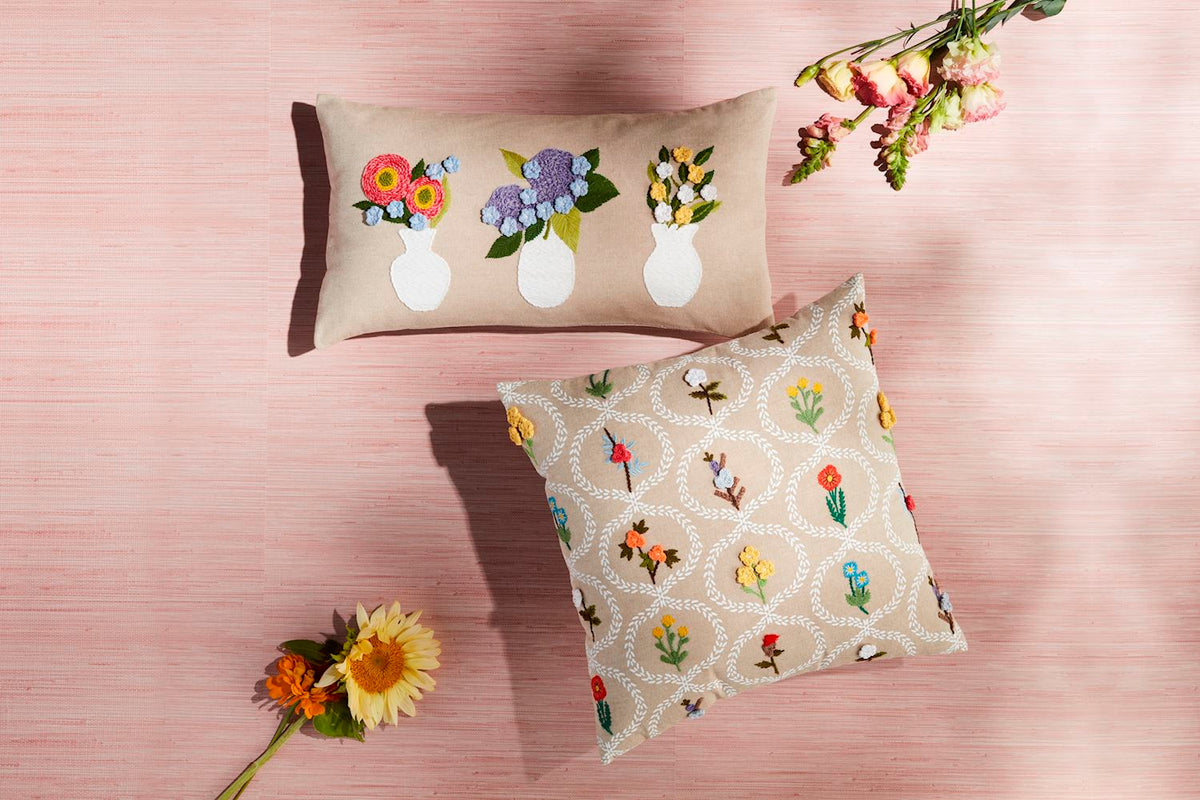 Lumbar Embroidered Flower Vase Pillow