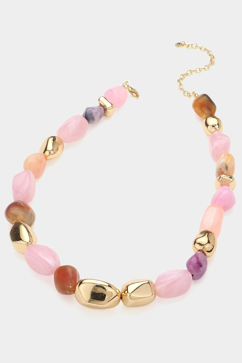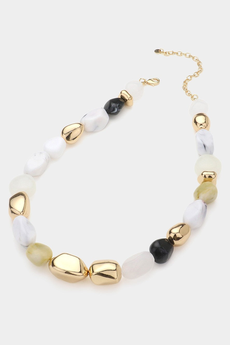 Necklace Size : 16" + 3.25" L Decor Size : 0.75" L Lead and Nickel Compliant Natural Stone Metal Pebble Beaded Necklace