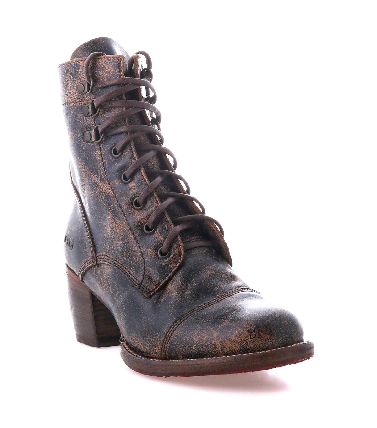 • 8 eye lace up heeled combat boot, D-Ring lace up at top