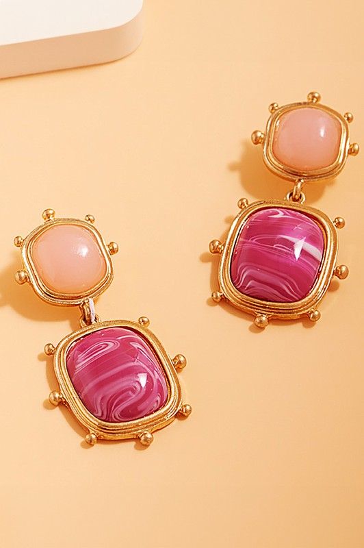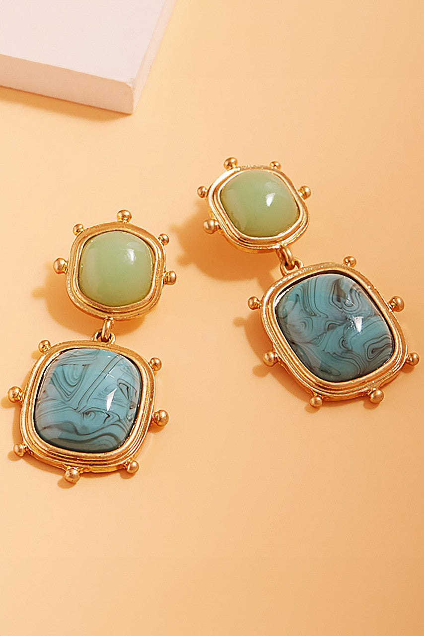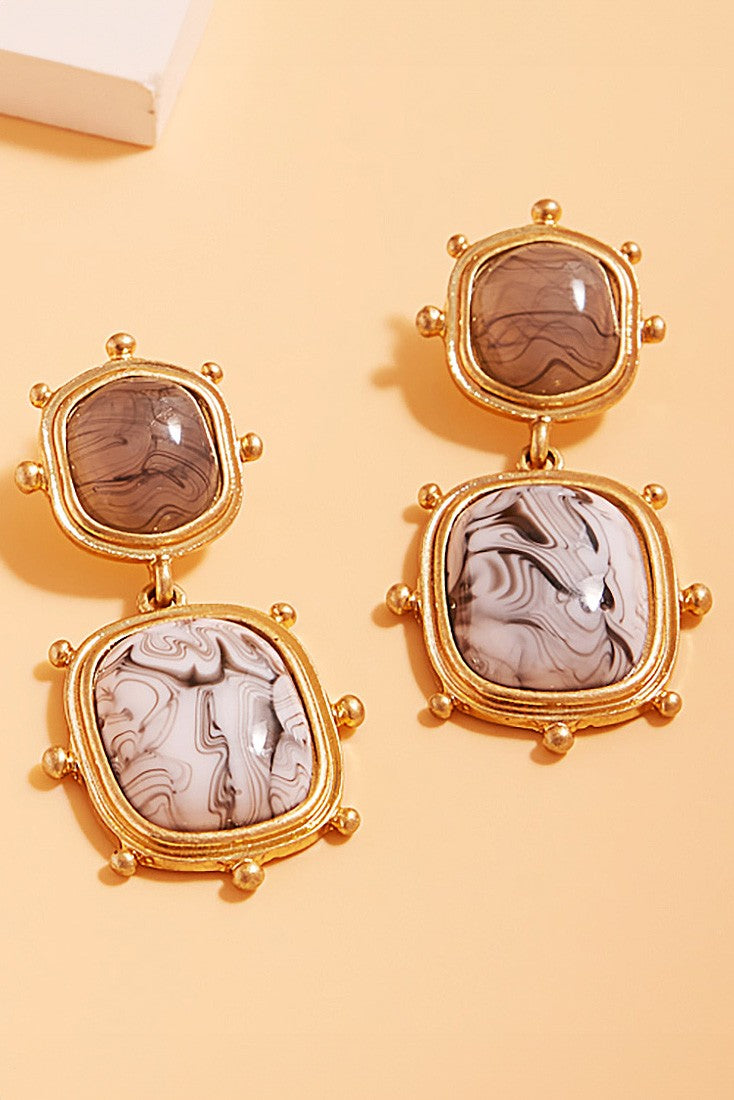 Square Natural Stone Cluster Dangle Earrings