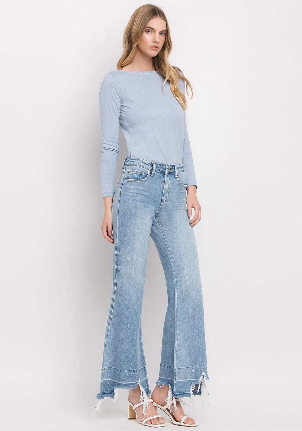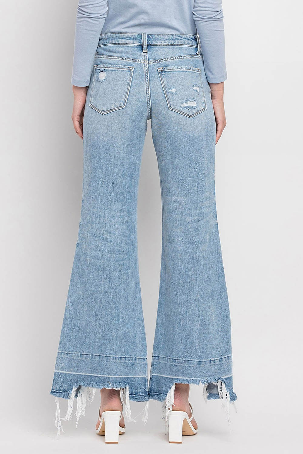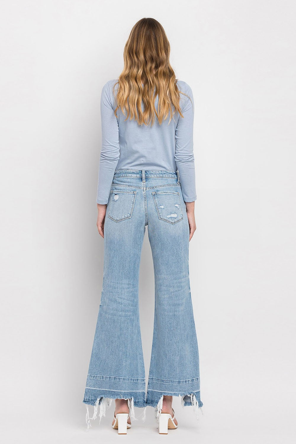 PATCHED HEM, DISTRESSED HEM, FULL LENGTH, FLARE JEANS