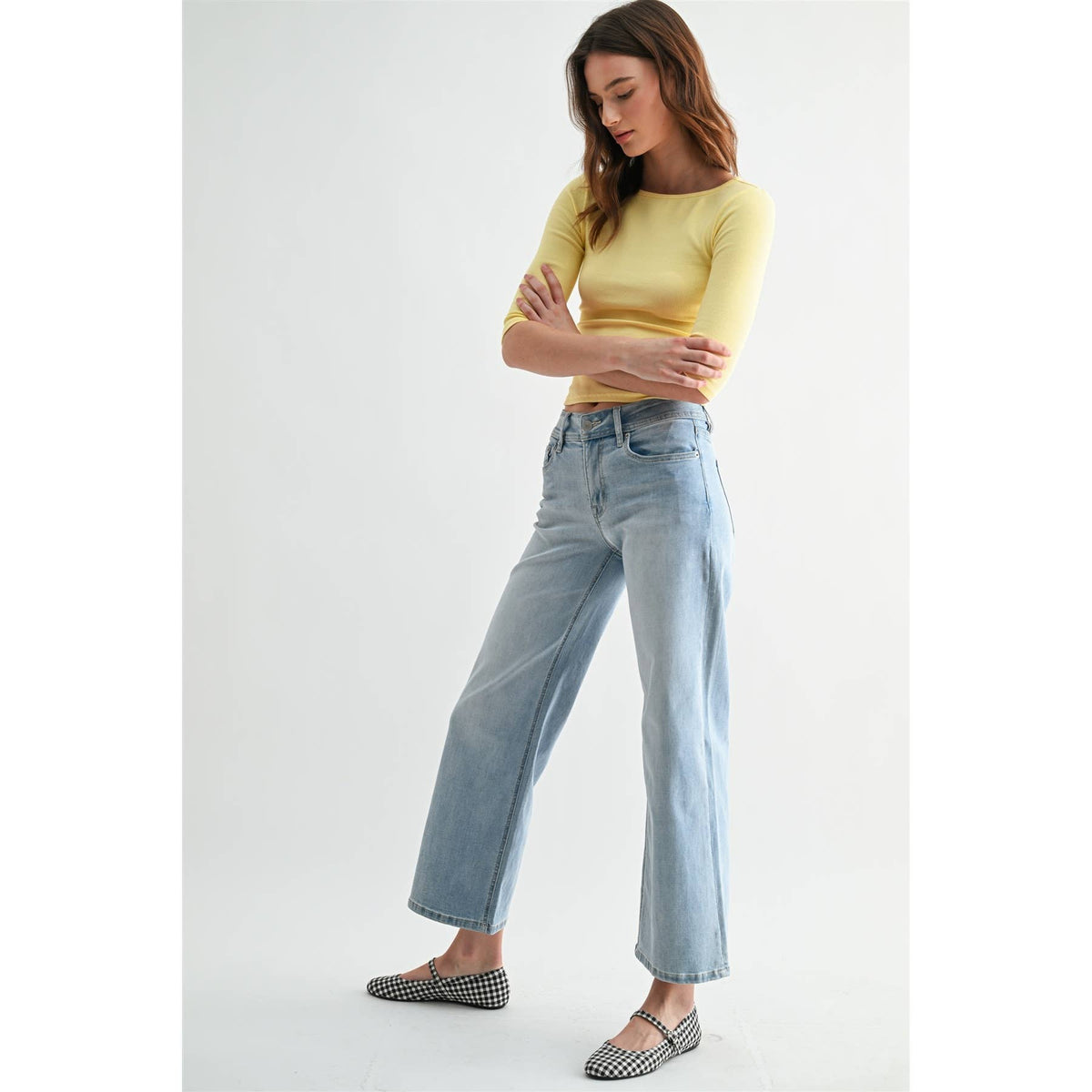 Mid-Rise Wide Leg Ankle Jeans