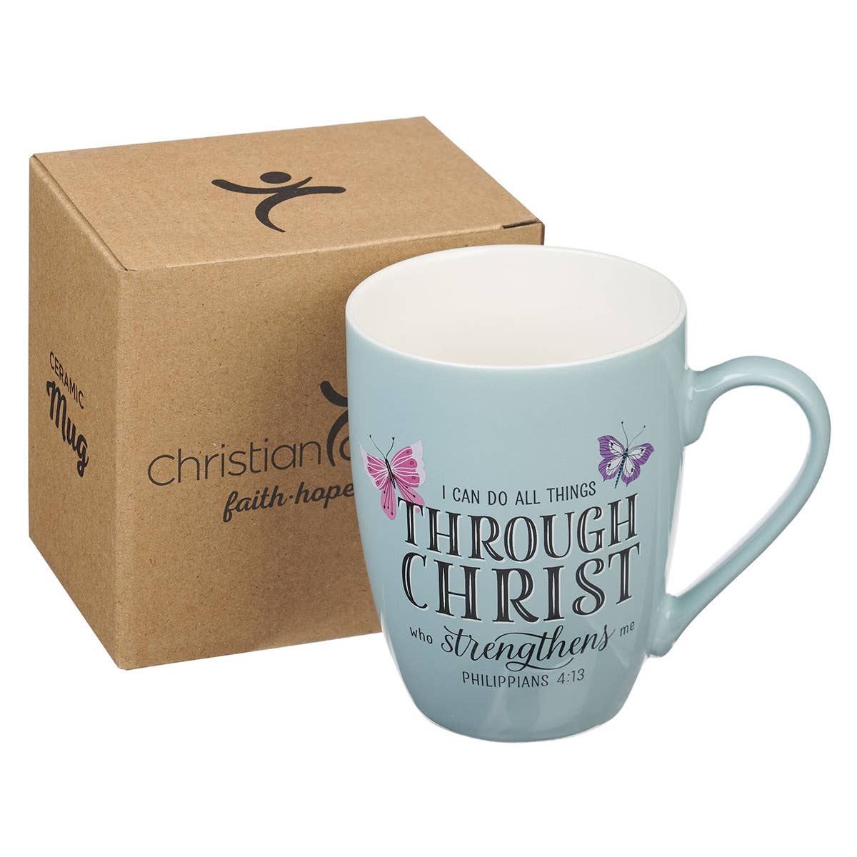 Mug White/Blue Butterflies Through Christ Phil. 4:13